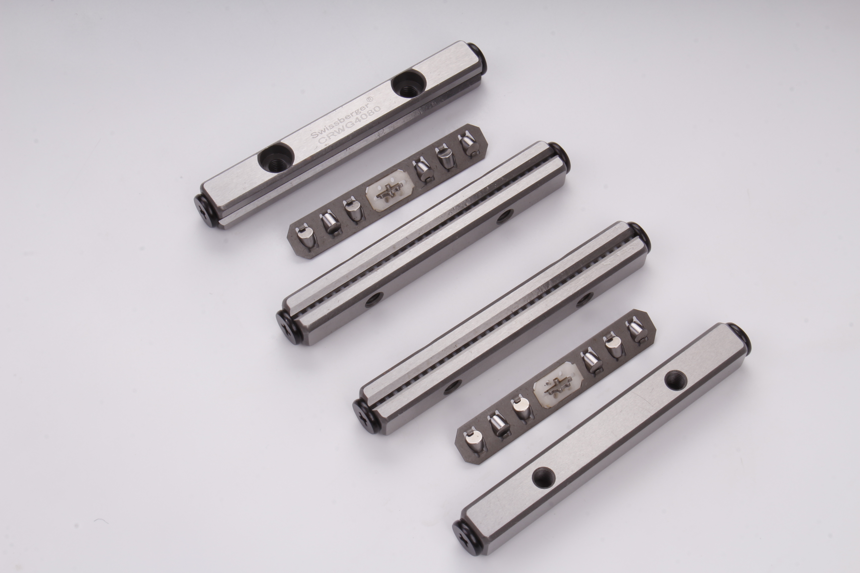 交叉滾柱導軌的功能可概括為:在較小的空間內實現高精度、低摩擦的線性運動,同時提供較高的抗顛覆力矩能力。當導軌移動時,交叉排列的滾柱在V型槽與平面導軌形成的滾道中作純滾動運動。由于滾柱交替方向布置,無論受力方向如何,總有相當數量的滾柱處于承載姿態,從而將滑動摩擦轉化為滾動摩擦,摩擦力矩小且運動平順。